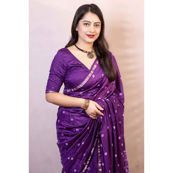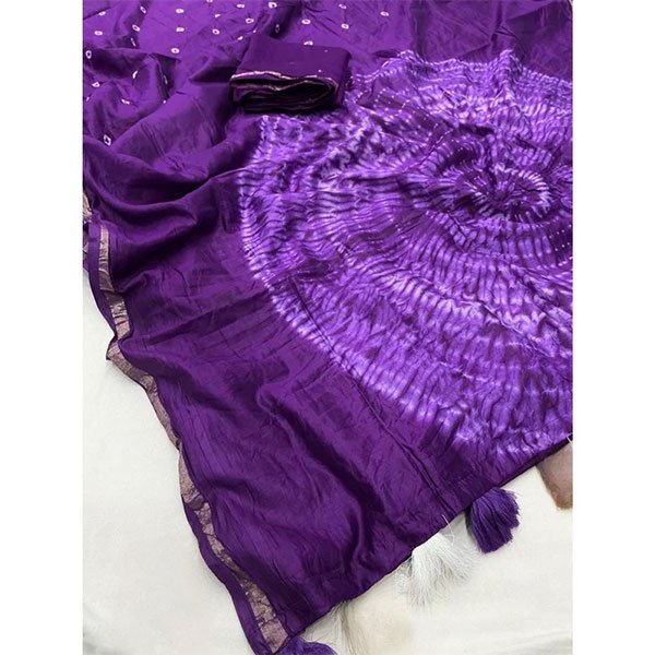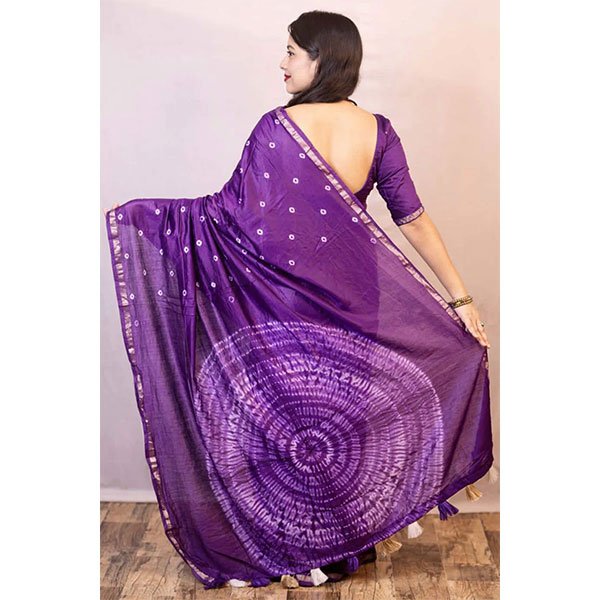 Violet Bandhani Digital Printed Linen Cotton Saree
